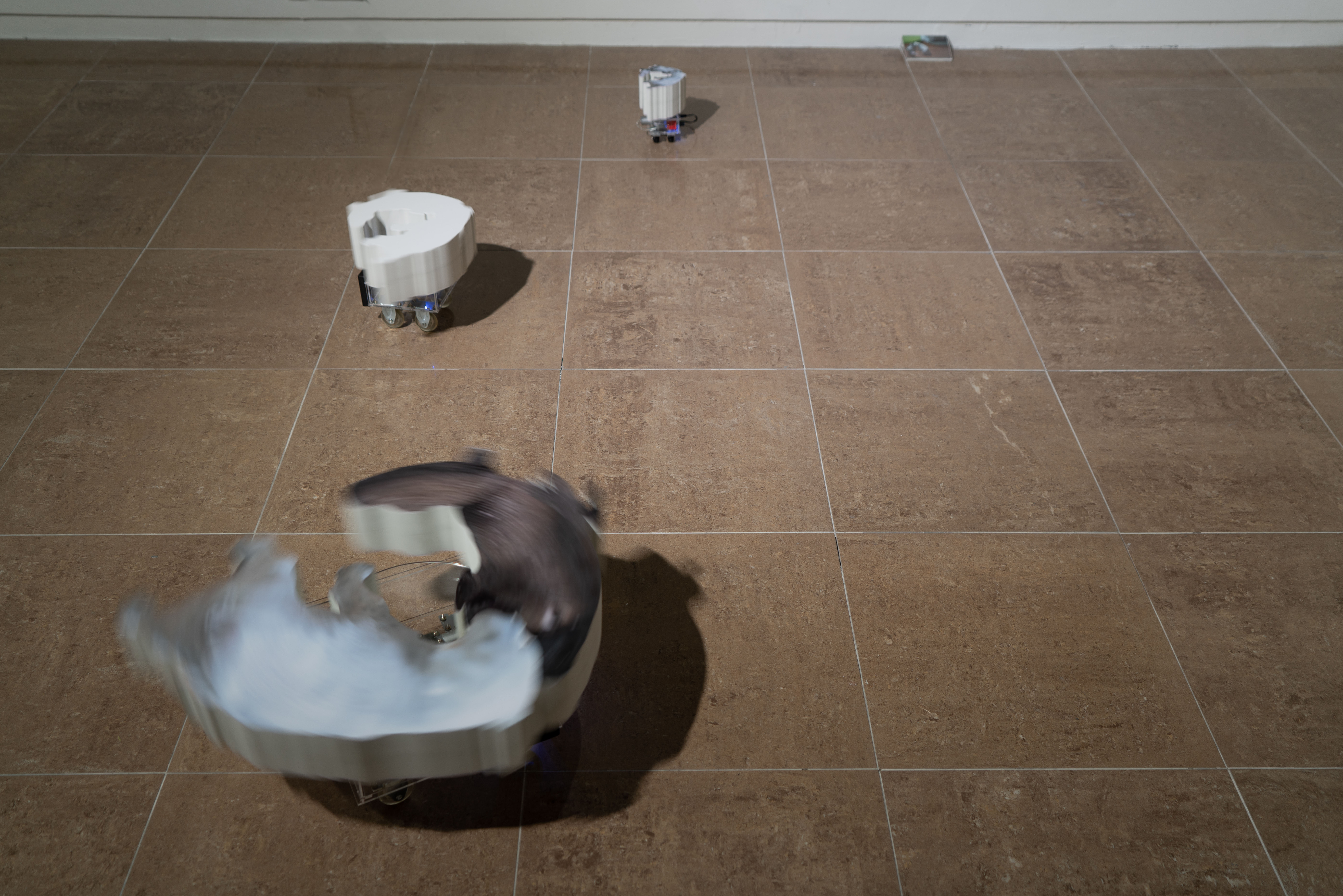 <사고 과정(Thinking process)-1>, 아크릴에 UV 프린트, 전자기판, 한 방향 바퀴, 가변설치, 2021